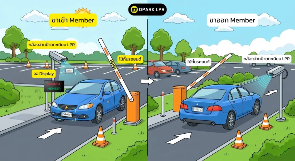 - จอ Display แสดงสถานะ MEMBER พร้อมป้ายทะเบียน