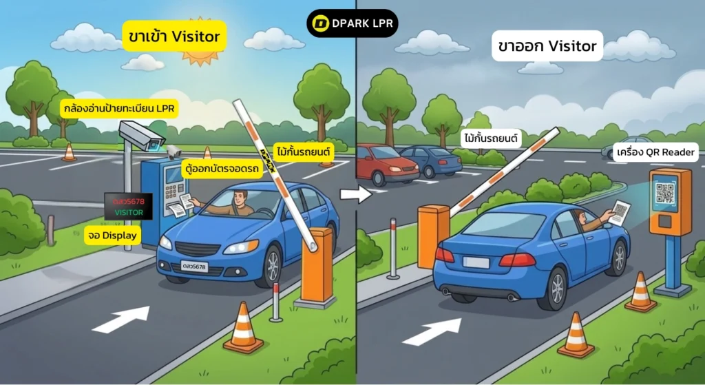 ลานจอดคิดเงินแบบไร้คนสำหรับคอนโด Flow การเข้าออกทำงานอย่างไร?